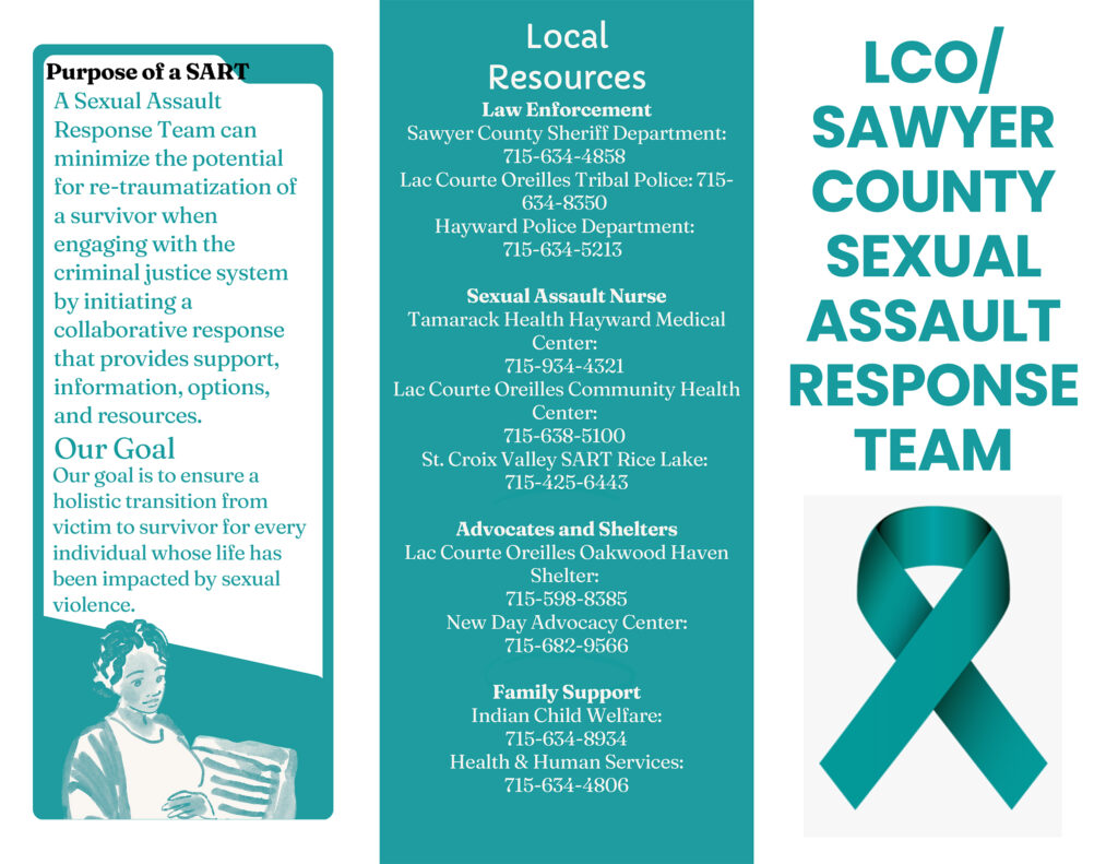 Organizing information and resources provided by the LCO / Sawyer County Sexual Assault Response Team (SART) into a clean and eye-catching layout.
